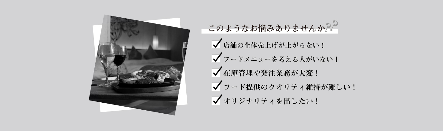 誰でも簡単に作れるレシピを提案し、小ロットですぐに納品できるワンストップのフードサービスです。集客の基本となっているイベントメニュー企画を取り入れる事で、滞在時間を満喫し、利用時間の延長や再来店に繋げる事ができます。